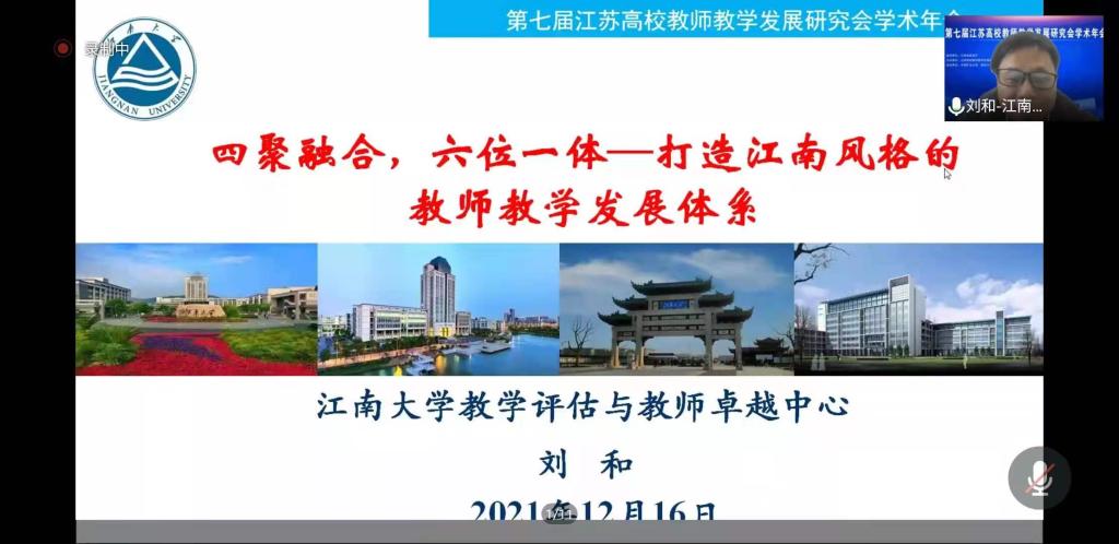 郭新宇表示,省教育厅将从建立立德树人长效机制、构建省教师教学发展新体系、共建多元开放的新型基层教学组织、营造重视教学学术的发展氛围、打造教学相长的师生学习共同体、提高高校教师教材建设能力、建立教师教学能力全周期培养制度、建设教师教学质量评价体系等方面,持续推动全省教师教学发展工作,打造江苏特色的教师教学发展新体系。上海交通大学、南京大学、中国矿业大学分别作主题报告。在院校交流环节,刘和代表我校作《四聚融合 六位一体——江南风格的教师教学发展体系》报告,着重介绍了我校在推行教师教学发展学分制,构建教师培训、教学比赛、咨询研修“三位一体”教师教学能力提升支持体系;服务导向、数据为基的常态教学监测评估机制;以至善名师、至善教学奖、至善教材奖为核心的至善教学荣誉体系等方面做的工作。