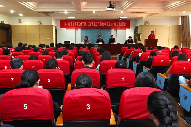 3月29日下午,江南大学2018年度校优秀工会干部、工会积极分子表彰暨工会2019年工作部署会在文浩馆205会议室召开,校党委副书记戴月波出席会议并讲话,校工会主席冯群康、副主席李红、刘玉敏,校工会委员会委员、工会经费审查委员会委员、各分工会主席、受表彰的优秀工会干部和工会积极分子等参加了会议。会议由校工会副主席李红主持。