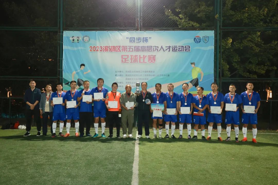 近日,2023滨湖区第五届高层次人才运动会五人制足球比赛落幕,本次比赛吸引了来自滨湖区内各高校、科研院所、企业等单位的众多足球爱好者参与。共有16支球队近260名运动员参赛,江南大学教工队由来自不同部门的15名队员组成。