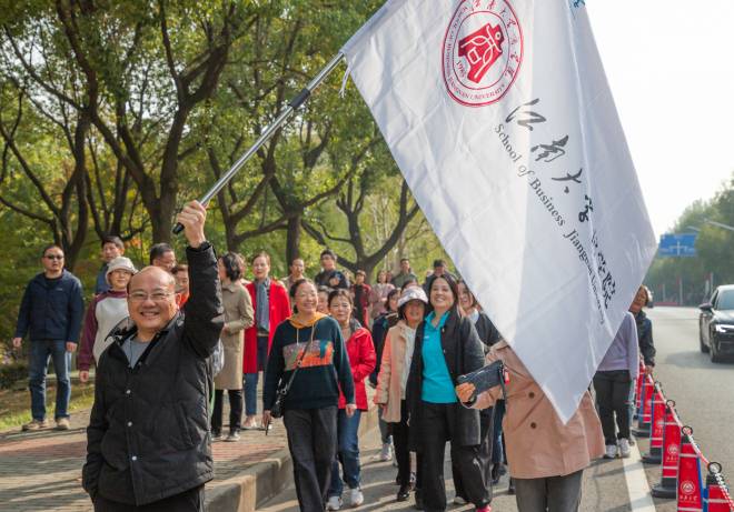 为庆祝江南大学建校65周年,宣传劳模精神,丰富广大教职工业余文化生活,增强团队凝聚力,提高教职工身体素质,展示我校教职工风采,11月15日,校工会组织开展“六十五载共奋进 劳模精神代代传”教职工主题徒步活动,校党委副书记戴月波,校党委常委、统战部部长、校工会主席朱飞,各学院及机关各部门干部、教职工约1500人参加了本次徒步活动。