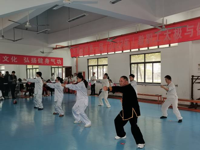 为深入贯彻落实习近平总书记关于体育工作的重要指示批示精神,深化体教融合,进一步推动健身气功项目在高等院校的开展,激发高校师生热爱传统文化的热情,11月22日下午,由校工会主办、校太极与健身气功协会承办的首届教职工太极与健身气功展演赛在体育中心142教室举行。
