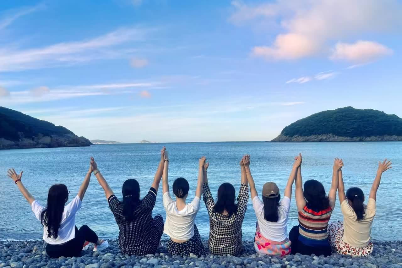 疗休养团队的教职工们还探索出多条海岛探秘线路。早起的老师们徒步来到了东沙海滩静待日出,虽然未见蓬勃日出,但清晨舒适的海风裹挟着风云的变幻,给予心灵对于自然之力的强烈震撼。老中青教职工结伴而行漫步乌石塘,大家或静坐石滩,观山海一色留下美照,或挽起裤脚,挑战水上乐园,不亦乐乎。年轻的老师们在岛上转起网红打卡,一起探秘网红书店,点一盏茶饮,寄身书画间,细赏海岛万千风情。在朱家尖的最高峰大青山,老师们一起乘车环山而上,俯瞰“十里金沙、五沙连环”的海湾景致,山间云雾缭绕,如同置身仙境,令人心旷神怡,豁然开朗;一起顶着烈日、挥洒着汗水,一路相互鼓励和帮助,欢声笑语、齐步山海间。