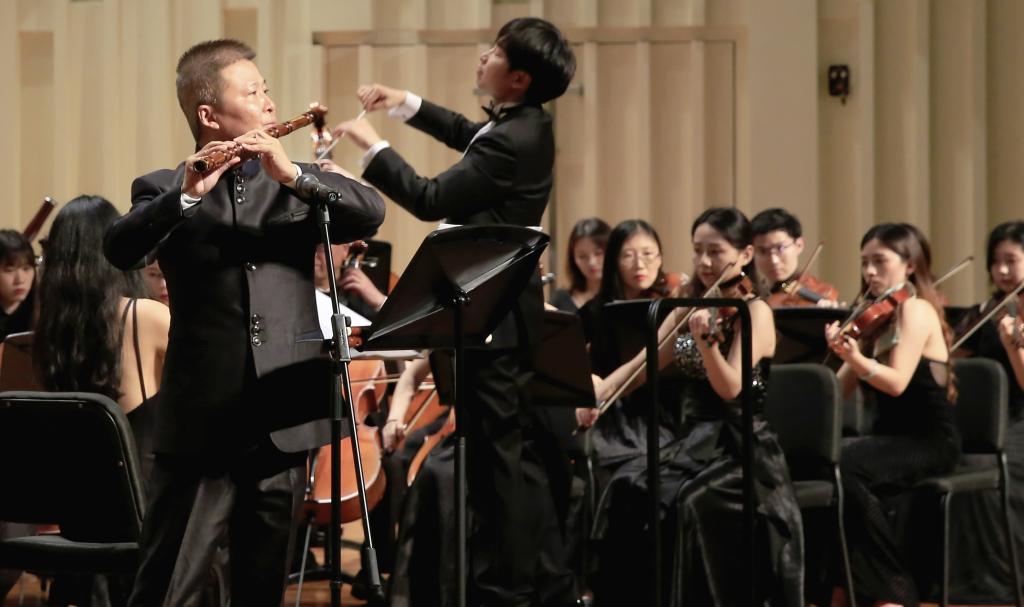 音乐会在《莫扎特第四十交响曲》中正式开始,共分四个篇章。沈雷强老师为大家带来了笛子独奏《走西口》。该作品取自民间,反映了人民艰苦奋斗的精神。沈老师精彩的演奏,赢得了观众的阵阵掌声。青年二胡演奏家高能的琴声中展开,她为观众带来华彦钧的《二泉映月》。琴声如泣如诉,将观众带到了那个久远的年代。本场音乐会中有三首曲目来自民间优秀的音乐作品,第一首江苏民歌《茉莉花》,旋律优美动听,被誉为第二国歌。第二首《瑶族舞曲》,向大家描绘了瑶族人民载歌载舞的欢庆场面。第三首《梁祝化蝶》,由指挥江博老师担任小提琴独奏。