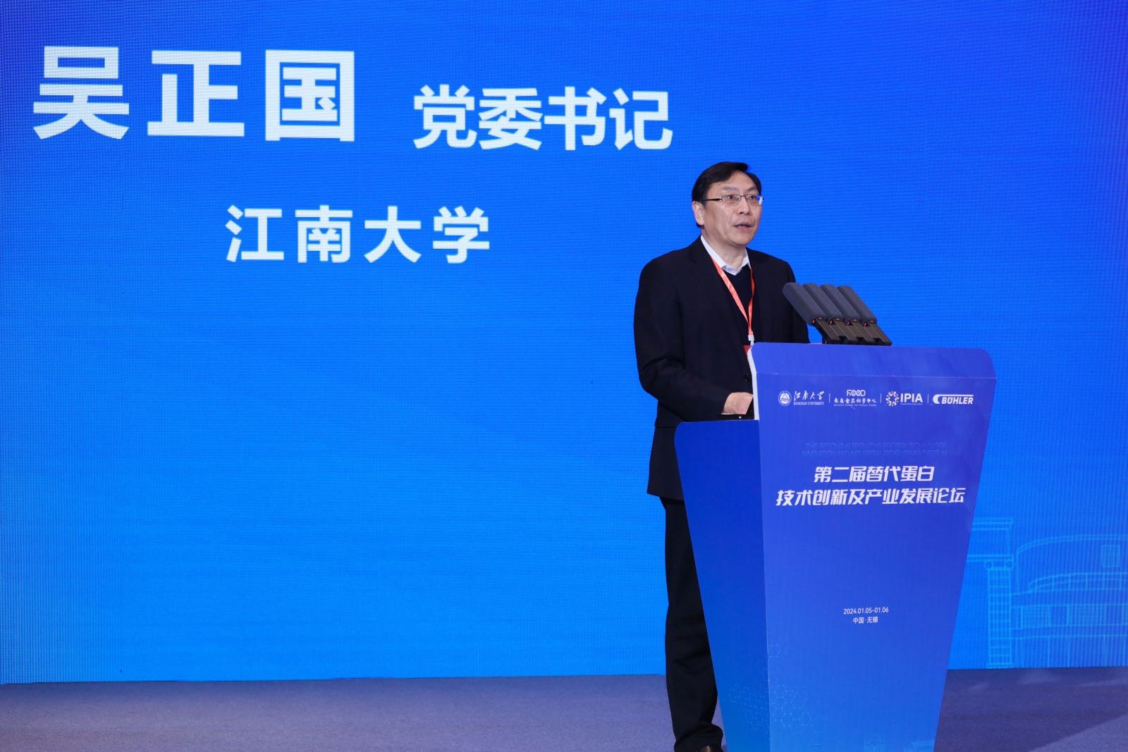 吴正国代表江南大学向各位院士、专家的莅临表示诚挚的问候和衷心的感谢。他介绍了江南大学长期以来坚持的办学理念和战略目标,希望江南大学能够与创新蛋白产业领域的高校、企业、研发机构等加强合作,共建“名企+名校”的合作模式,借助高校的交叉学科发展优势基础和前沿科学研究积累,共同促进科技成果转化,为我国大健康产业的可持续发展积极贡献力量。