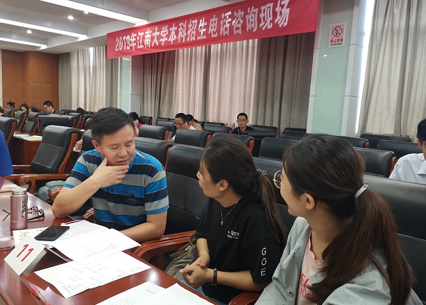 6月25日-26日,江南大学党委书记朱庆葆、党委副书记戴月波奔赴学校本科招生电话咨询和无锡市高招咨询会现场,关心2019年本科招生工作进展情况,亲切慰问奋战在咨询服务一线的工作人员,并与前来咨询的考生和家长交流。