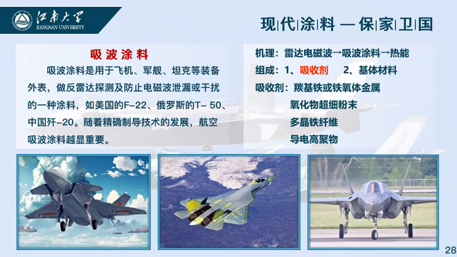 紧接着,刘仁教授以“涂料的前世今生”为题,讲解了什么是涂料、涂料的作用等知识。他还介绍了从旧石器时代以来的涂料发展历史,分析了无机、有机、物化及分析等理论科学的发展对涂料工艺技术的促进作用。在这一版块,刘教授重点强调了现代涂料对当下生活的巨大影响以及其在国防科技领域的应用。