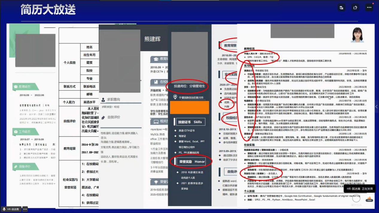 4月22日晚,江南大学职业导航季系列活动之“简历门诊|专业HR助你攻克‘求职第一关’”以钉钉会议加直播的形式在线上顺利举办。会议邀请三只松鼠校园招聘部招聘经理徐君瑶就简历撰写传授自己校招多年的经验。本次线上分享会共计800余位同学在线参与聆听与互动。
