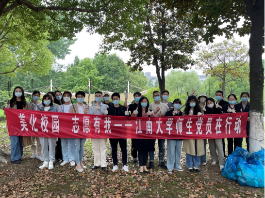 5月12日中午,招生就业处党支部与设计学院2003硕士党支部联合开展“美化校园 志愿有我——江南大学师生党员在行动”校园环保志愿服务活动。