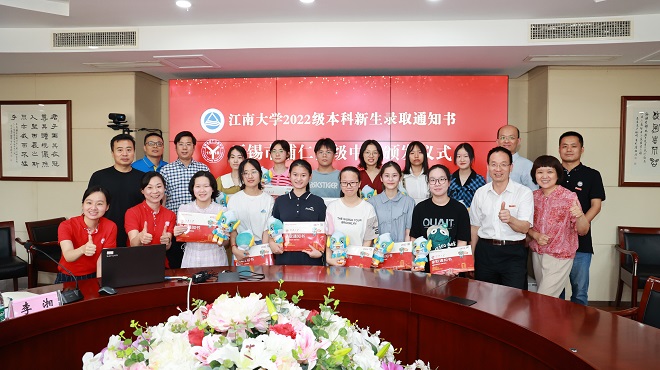 7月28日上午,江南大学党委常委、副校长堵国成亲临无锡市辅仁高级中学,为2022级本科新生颁发录取通知书。无锡市辅仁高级中学副书记马彩红,副校长毛锡荣、吴宝平,教务处副主任李湘,高三年级组长陈雷与12位“准江南人”共同参加颁发仪式。江南大学商学院院长浦徐进教授,招生就业处副处长张婕英,招生办公室主任郑真真、招生办公室李金杰共同见证现场颁发仪式。