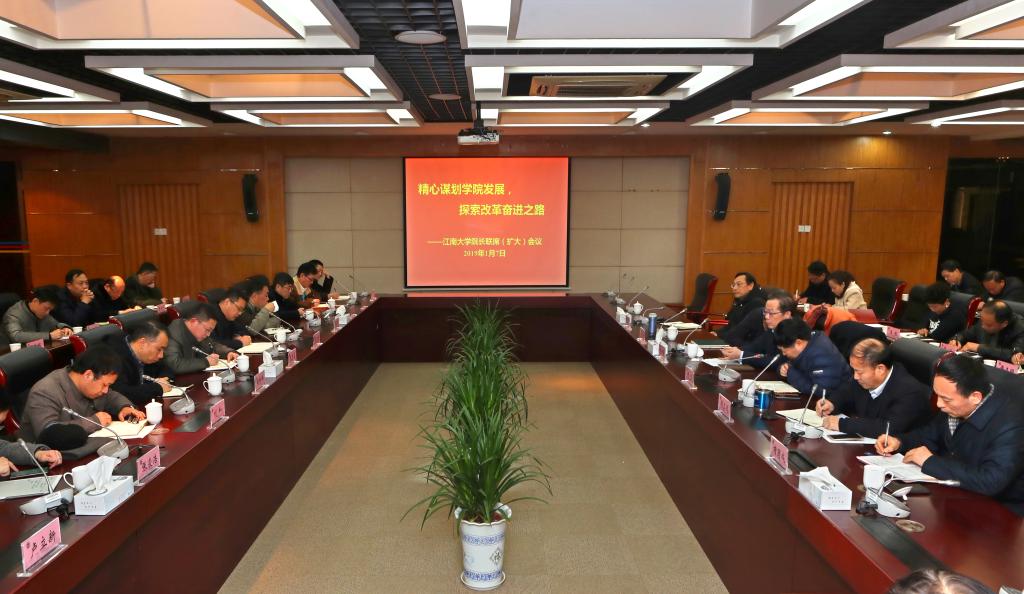 1月7日下午,学校以“精心谋划学院发展,探索改革奋进之路”为主题在行政楼B307会议室召开院长联席(扩大)会议。校领导、各学院院长、党委书记及相关部门负责人出席了本次会议。会议由副校长顾正彪主持。