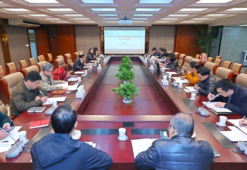 就如何抓好贯彻落实,顾正彪提出三点要求:一要抓好《总体方案》的学习研讨、培训辅导和宣传引导工作。各有关单位要创新学习形式,教育引导广大教职工深刻学习领会习近平总书记关于教育评价的重要论述精神,深刻领会“为什么改”“改什么”“怎么改”,不断增强深化新时代教育评价改革的责任感、使命感和紧迫感,切实把广大教职员工的思想和行动统一到《总体方案》确定的各项任务上来。二要聚焦重点难点抓落实。各单位围绕重点任务,突出问题导向、目标导向,对标评价要求、梳理当前工作中的问题,明确“改什么”“怎么改”、时间点、责任人,并尽快形成评价改革工作清单上报学校。三要结合实际,积极探索推进教育评价改革的好思路、好方法。要坚持效果导向,强化系统思维,压实责任担当,确保教育评价改革关键领域取得实质性突破。
