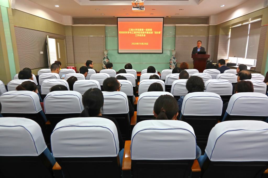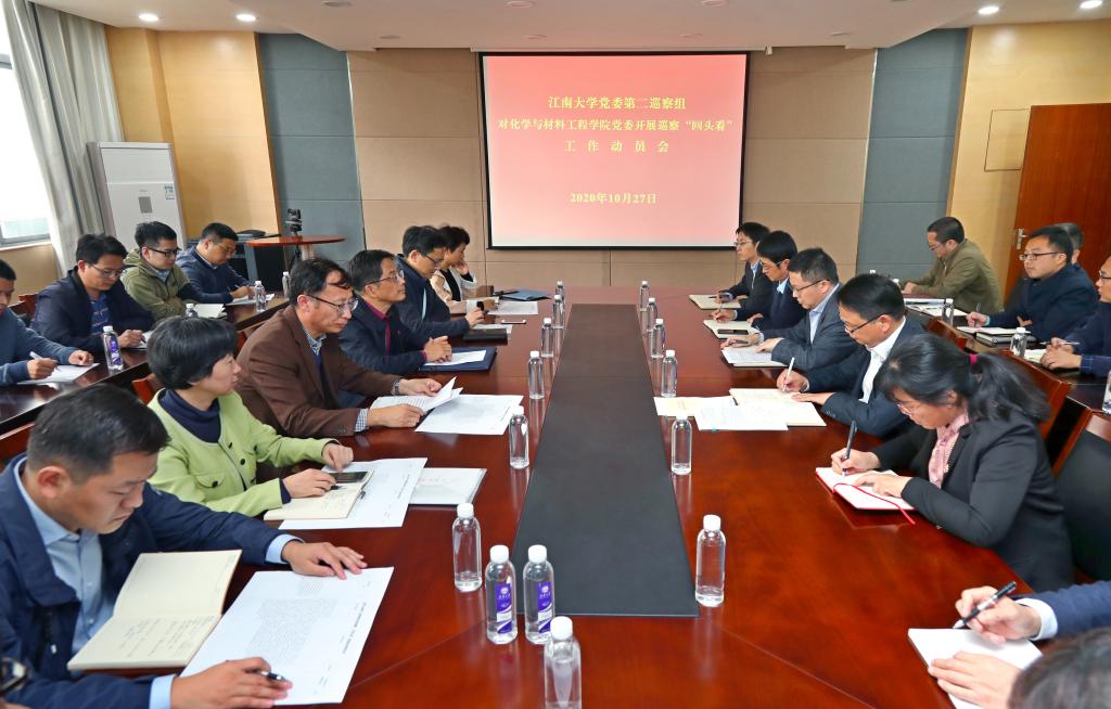 10月26日-28日,学校党委第二轮巡察“回头看”第一巡察组和第二巡察组分别进驻纺织科学与工程学院党委、设计学院党委、化学与材料工程学院党委和物联网工程学院党委。第一巡察组组长、校党委委员、校长助理、宜兴江阴校区建设与管理委员会常务副主任张光生,第二巡察组组长、校党委委员、后勤保障系统党委书记兼后勤工作协调办公室主任方正泉分别在工作动员会上讲话,通报巡察重点任务、总体安排和工作要求;学生工作部部长张菁燕、人力资源处处长王鸿博、党委教师工作部部长徐锡清、党委巡察工作领导小组办公室主任丁文勤分别代表校党委巡察工作领导小组传达精神并提出要求;纺织科学与工程学院党委书记张菁、设计学院党委书记邱建平、化学与材料工程学院党委书记潘庆伟、物联网工程学院党委书记程捷音分别代表被巡察党组织做表态发言并作巡察整改落实情况报告。