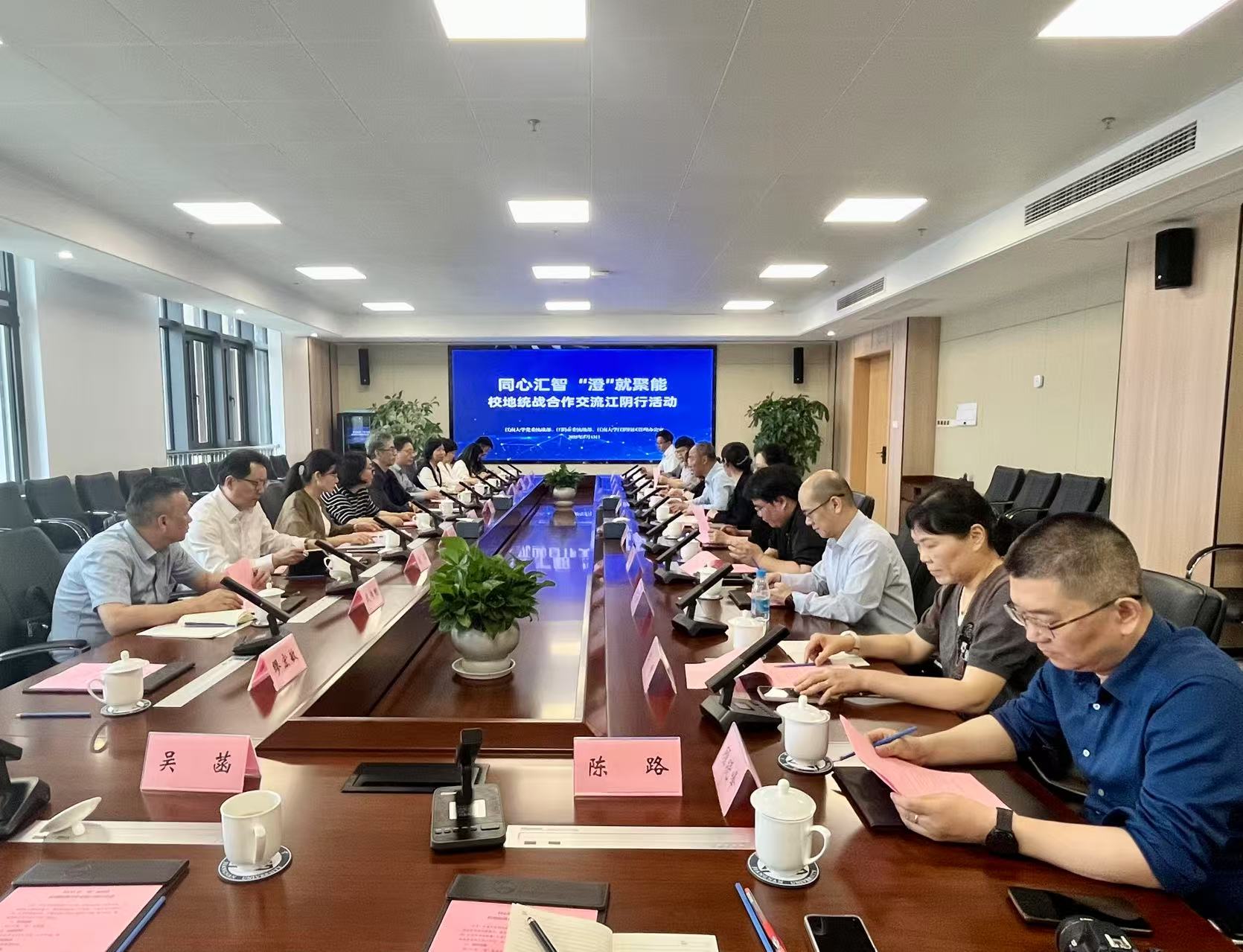 为进一步推动校地统战资源整合,发挥统战优势效能,5月13日下午,校党委统战部联合江阴市委统战部在江阴校区举办“同心汇智 ‘澄’就聚能——校地统战合作交流江阴行”活动。校党委常委、统战部部长朱飞,江阴市委常委、统战部部长郁秋皓出席会议并讲话。江阴市委统战部常务副部长周琛、江阴校区管理办公室副主任刘虹,校地各民主党派及统战团体负责人等参加活动。会议由学校党委统战部副部长蒋艳主持。