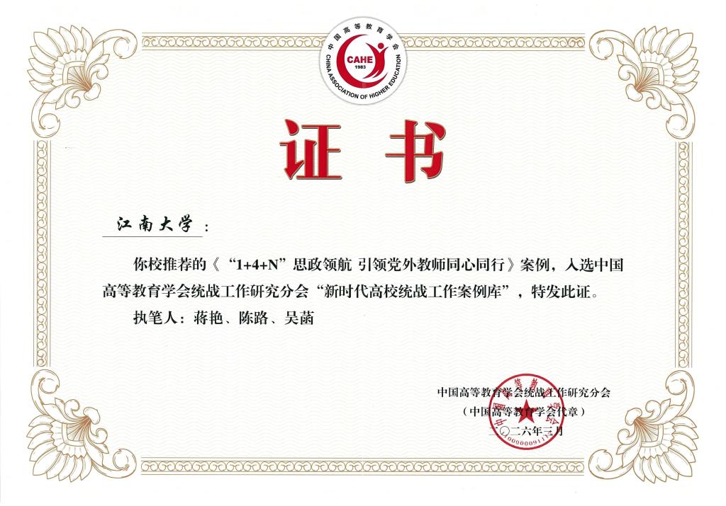 近日,由教育部思想政治工作司指导、中国高等教育学会统战工作研究分会组织评选的“新时代高校统战工作案例库”入选名单正式公布,学校党委统战部申报的《“1+4+N”思政领航 引领党外教师同心同行》成功入选。