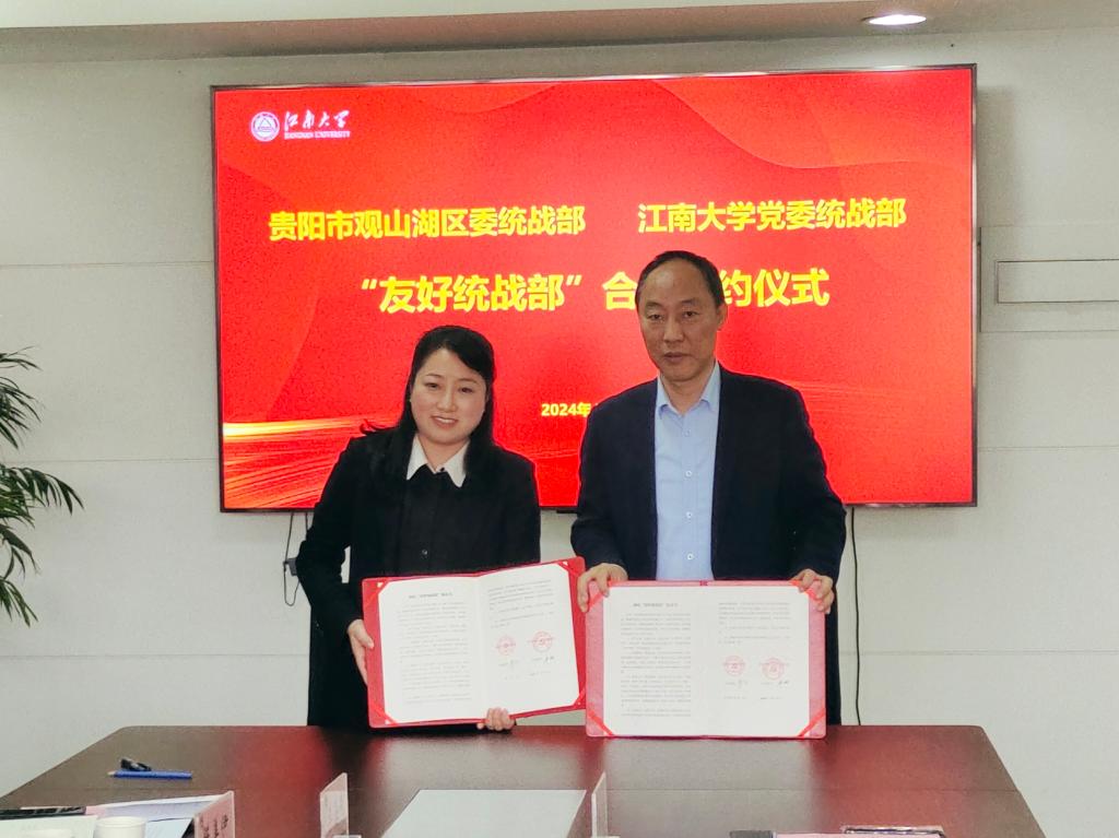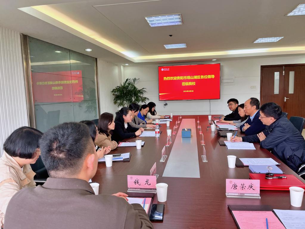 4月2日,贵阳市观山湖区委统战部常务副部长、区工商联党组书记禚琳率队来校考察调研。校党委常委、统战部部长朱飞参加座谈并讲话,党委统战部副部长王冰,无锡市知联会副会长、校知联会会长武戈,无锡民促会常务副会长、铸牢中华民族共同体意识研究基地常务副主任沈伟晔等陪同座谈考察。