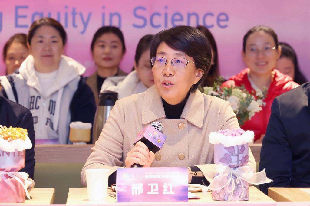 活动伊始,无锡会场召集人江南大学匡华教授通过视频连线,向大会介绍了无锡会场的女化学工作者和参会嘉宾。随后,陈卫和邢卫红分别致辞,强调了女性在化学领域的重要贡献,并呼吁社会各界继续支持女性科技工作者的职业发展。陈卫在致辞中表示,女性科技工作者在推动科技创新和社会进步中发挥了不可替代的作用,江南大学一直致力于为女性科研人员提供平等的发展机会和平台,未来将继续支持女性在科学领域的成长。邢卫红则从女性领导力的角度出发,鼓励青年女科技工作者勇敢追求职业梦想,积极参与科技创新,彰显巾帼担当作为。