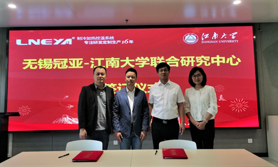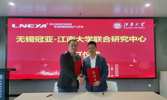 颜厥枝介绍,自2010年成立至今,无锡冠亚深耕制冷控温细分领域多年,是国内该领域的隐形冠军,近年来连续获得江苏省高新技术企业、苏南瞪羚企业、江苏省工程研究中心等荣誉资质,公司在单机复叠制冷、高低温快速升降温、反应釜单一介质控温核心等技术研发方面处于行业领先水平。公司产品在航空航天、芯片半导体、新能源汽车、化工医药等多个领域得到广泛应用,是美国康宁、宁德时代、长川科技等行业巨头的优秀供应商。无锡冠亚历来重视技术研发和人才队伍建设,未来五年是冠亚发展壮大的关键时期,面对复杂的国际环境和激烈的市场竞争,急需引智聚才。本次研究中心的建立,为冠亚注入了强大的创新力量,通过校企联合开展前沿科技研究,立足现有技术基础,围绕双方科技攻坚方向,争取早日结出实质性成果。同时,通过共建研究中心,为江南大学的相关科技成果转化落地创造便利条件,为高质量人才培养提供良好的实践环境,反哺学校的教科研工作,实现校企共赢发展。