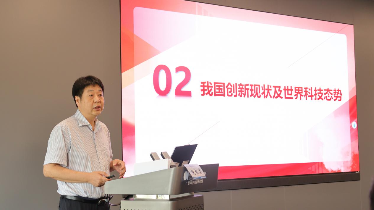 倪松涛围绕“科技创新与强国建设发展历程”“我国创新现状及世界科技态势”“未来拔尖创新人才培养趋势”三个维度展开授课。系统梳理了国内外科技发展脉络,深入剖析当下中国科技发展的优势与挑战,强调教育、科技、人才是不可分割的有机整体,三者相互促进、环环相扣,共同构成社会主义现代化强国建设的战略支撑。