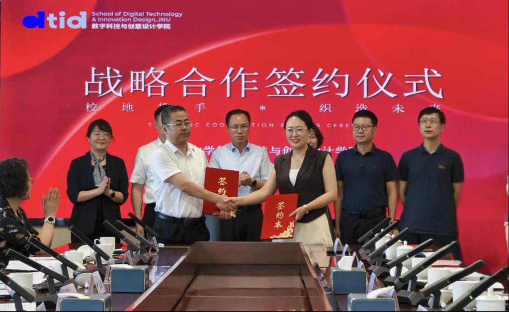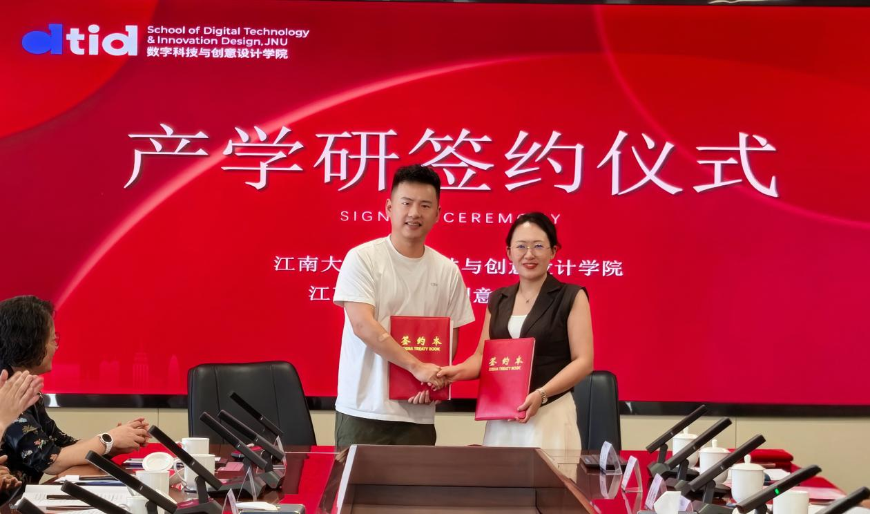 9月15日,数字科技与创意设计学院与江阴市祝塘镇人民政府战略合作签约仪式在江南大学江阴校区举行。江阴市委常委尹志华,江南大学江阴校区管理办公室主任王珏,江阴市科学技术局、江阴市工业和信息化局、江阴市祝塘镇、数字科技与创意设计学院、江阴天蕴国际纺织品集团有限公司、江苏圣澜服饰创意有限公司等代表参加签约。