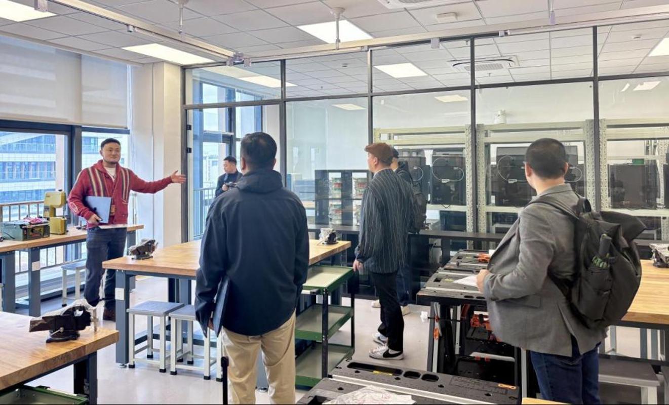 学院副院长牛犁教授详细介绍了学院的学科布局与专业特色,全面展示了学院科研在“人工智能+设计”交叉领域的实力与布局。工业设计与智能交互系主任沈杰作专题分享。他深入阐释了有关专业的建设背景、核心特色以及校企合作成果。与会企业代表结合各自领域的发展需求,与高校科研团队展开了深入地交流,共同描绘未来校企合作的美好图景。