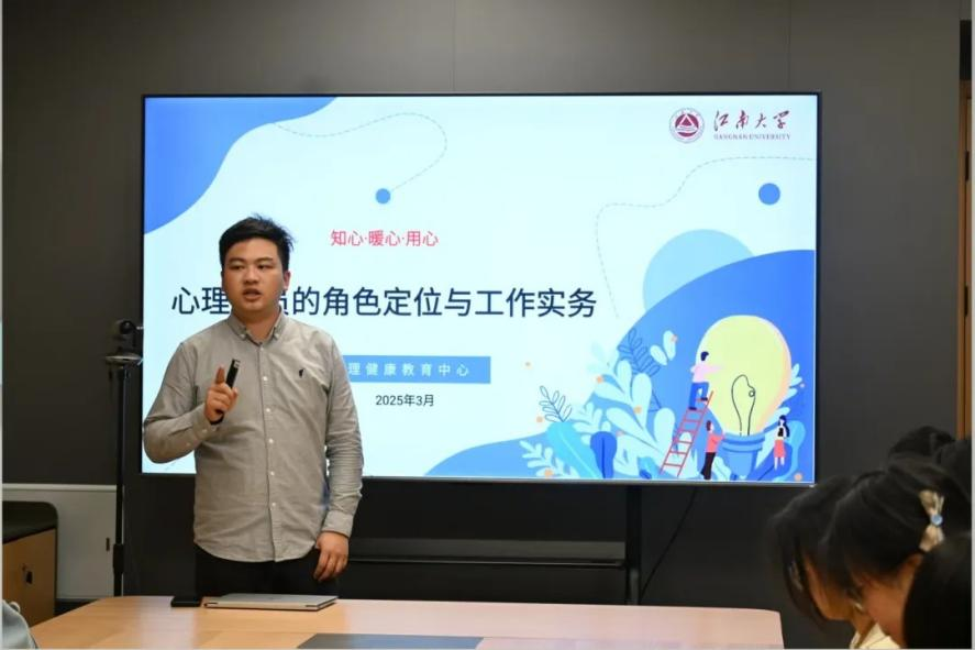 为提升学生心理健康素养,加强心理健康工作队伍建设,近日,数字科技与创意设计学院在江阴校区数创楼B206举办“心理委员能力培训”专题会议。本次培训主要面向2025级本研新生,其他年级心理委员通过线上方式参加。会议由学院心理工作辅导员冯志远主持。