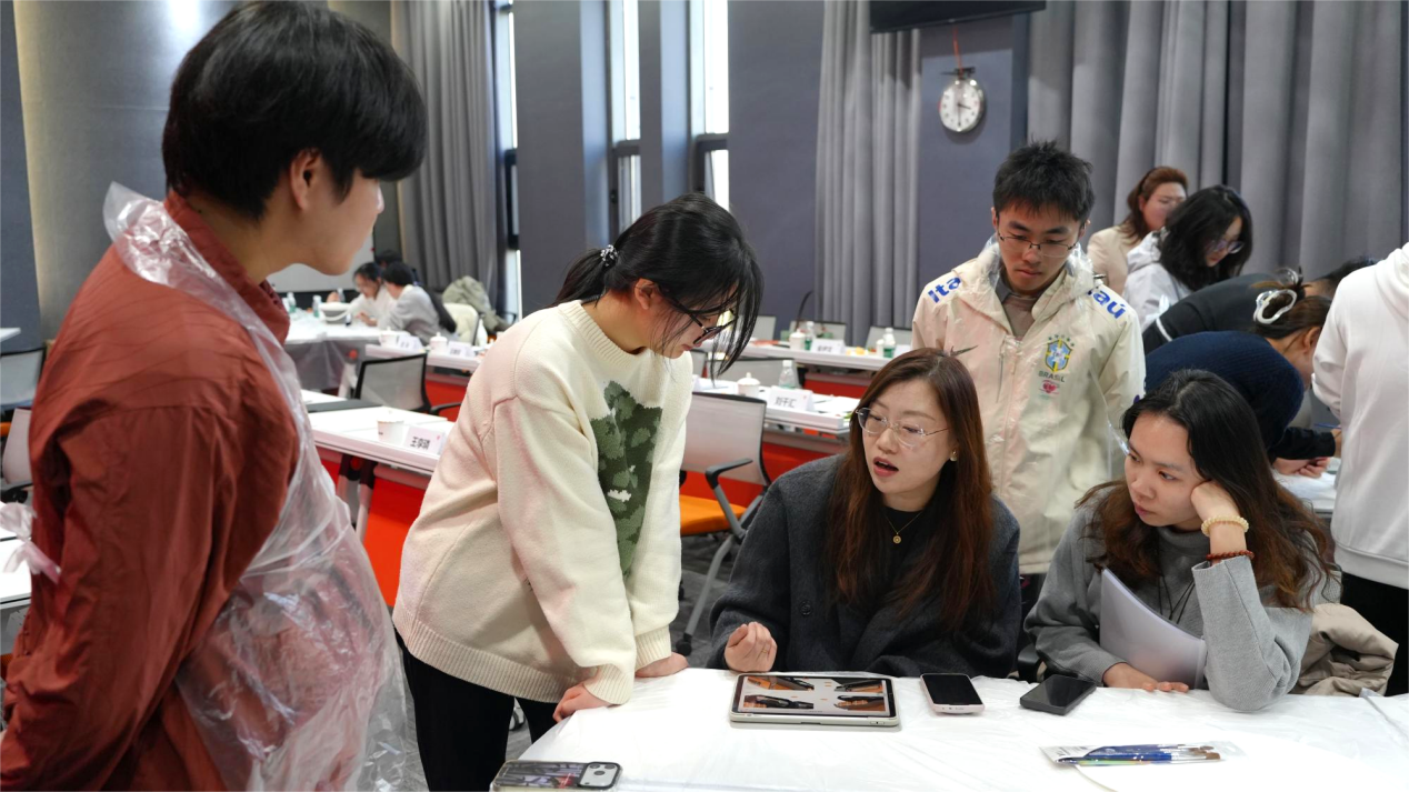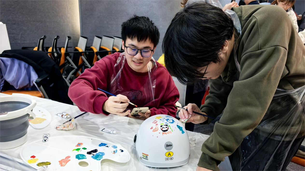 最具实践性的现场手绘设计与作品集指导环节中,同学们用画笔手绘头盔,记录设计美好瞬间。雅迪研发设计团队的专家与两位校友共同组成指导小组,针对同学们带来的作品集与设计构思进行一对一指导。专家们从设计定位、造型优化、功能整合以及作品集呈现等方面提出了专业的建议,同学们积极提问、认真记录,在交流探讨中收获颇丰,使同学们将理论知识与实践需求紧密结合。