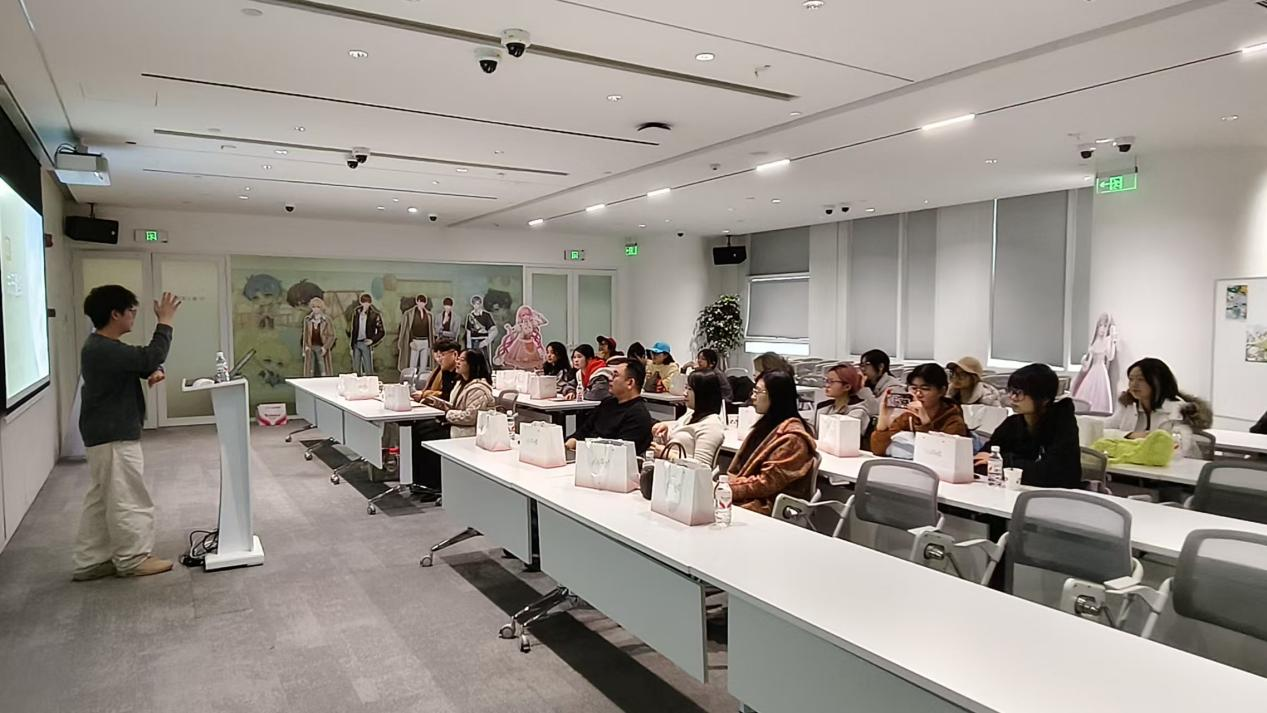 活动期间,学院师生一行在引导下实地参观叠纸科技文化展厅,详细了解企业发展历程、旗下恋与系列、暖暖系列等核心品牌作品的创作理念、形象设计与文化内涵,直观感受数字创意成果从设计研发到产业落地的全流程实践路径,进一步深化了对行业前沿与产业生态的认知。
