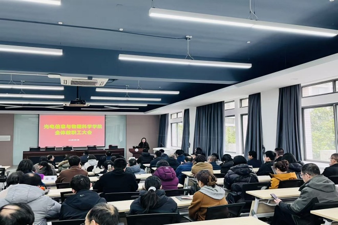 最后,许群作总结讲话。她强调,新学期是学院“十五五”开局的关键时期,全体教职工要继续发扬锐意进取、勇于担当的精神,立足本职岗位,积极应对挑战,共同推动光电信息与物理科学学院各项事业再上新台阶。