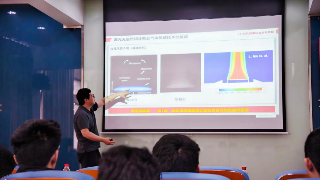 在交流环节,现场师生围绕激光光谱诊断精度、实验实现难点以及相关技术在实际工程中的应用前景等问题,与两位主讲老师进行了深入探讨。针对燃烧诊断中复杂环境对测量结果的影响问题,主讲老师详细介绍了信号处理与系统优化方法;对于空芯光纤结构加工及气体耦合效率等关键技术问题,也进行了细致解答。现场交流氛围热烈,进一步加深了师生对相关前沿技术的理解。
