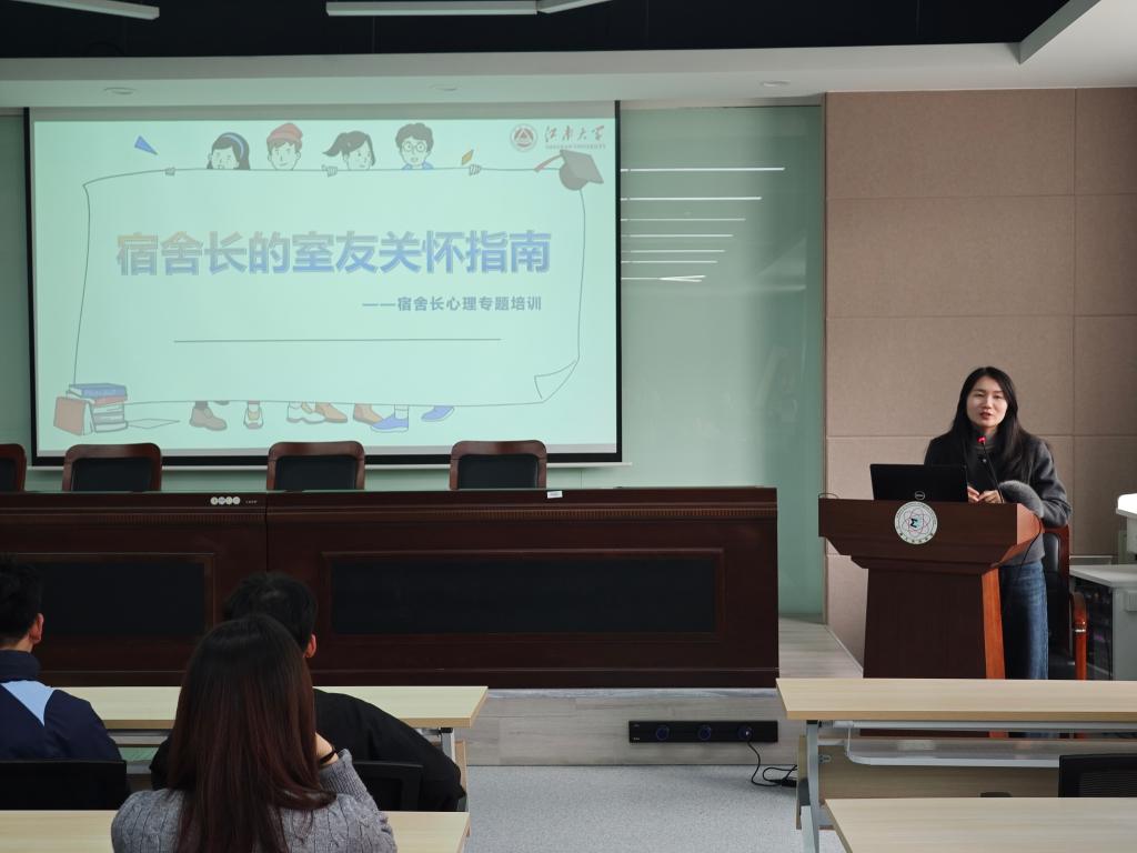 培训聚焦于提升宿舍长的实操能力。通过剖析校园真实案例,引导宿舍长学会关注室友的言行举止与情绪变化,从细微之处入手精准识别潜在的心理困扰。在此基础上,培训提出了“用心观察、积极沟通、及时转介”的关怀三原则。为帮助宿舍长有效开展工作,培训还分享了“聊事实—聊感受—聊需要—聊行动”的沟通四部曲,并强调在遇到超出自身能力范围的情况时,要秉持“生命优先”原则,及时寻求校院专业心理支持。培训上,主讲老师还向全体宿舍长通报了每月心理动态摸排制度和党员教师联系低年级本科生宿舍制度。